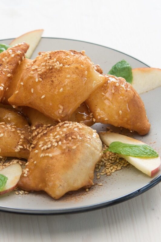 Τα τηγανίζετε σε καυτό και μπόλικο λάδι. Όταν ετοιμαστούν, τα βάζετε σε πιατέλα, περιχύνετε πάνω τους το μέλι και τα πασπαλίζετε με κανέλα και σουσάμι.