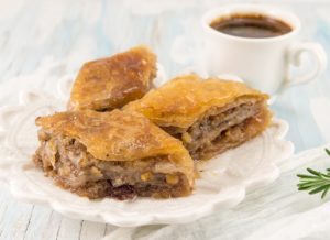 The clean mountain air and Ionian sea breezes open your appetite to the pleasures of The Greek Breakfast of Epirus. Local specialties include blatsaria, cornbread and greens pita pie, flour pie of Zagoria, the traditional pepeki of Epirus, a pita pie without a crust and cheese, egg and yogurt filling. There’s also a hearty breakfast pie for meat lovers, kothropita, lamb, rice and crust on the bottom. A variety of fresh breads, yogurt and exceptional cheeses, such as the goat cheese of Metsovo and anthotyro, a whey cheese, which is a delicious breakfast dish topped with honey or fruit are just a slice of the region’s gastronomic heritage.