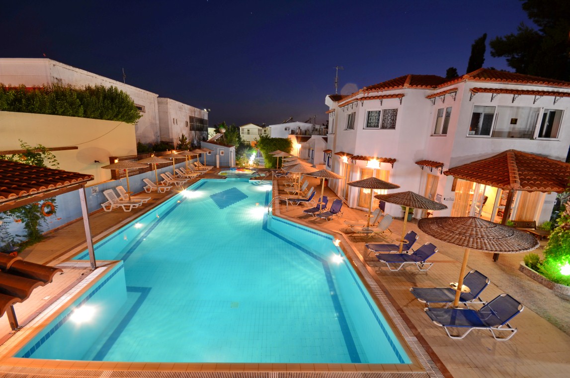 Το Aspro Spiti είναι ένα εναλλακτικού τύπου κατάλυμα, το οποίο διαθέτει επιπλωμένα και πλήρως εξοπλισμένα στούντιο και διαμερίσματα που φέρουν το όνομα ενός βοτάνου. Στους κήπους οι επισκέπτες θα βρουν ποικιλία βοτάνων και στο βιολογικό μποστάνι, που βρίσκεται πίσω από το ξενοδοχείο, θα δουν από κοντά τα φρούτα και τα λαχανικά με τα οποία φτιάχνονται οι παραδοσιακές συνταγές του πρωινού μπουφέ και των γευμάτων του εστιατορίου.