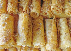 The region’s Greek Breakfast is a Peloponnesian feast.  Fresh fruit and juices, sage and mountain tea, delicious local cheeses, such as sfela (PDO) Laconia, a semi hard brine cheese, simpoukoukira, a Tsaskonian cheese made from milk cream without butter, cured meats and sausages, xerotigana, fried pastries dipped in honey and sprinkled with walnuts, galatopita (milk pie), sweet pumpkin pie and semolina halva are just a few of the local delights. And, you can expect a dash of cinnamon where you don’t expect it for authentic Peloponnesian flavor, a favorite spice and inspirational culinary tradition.